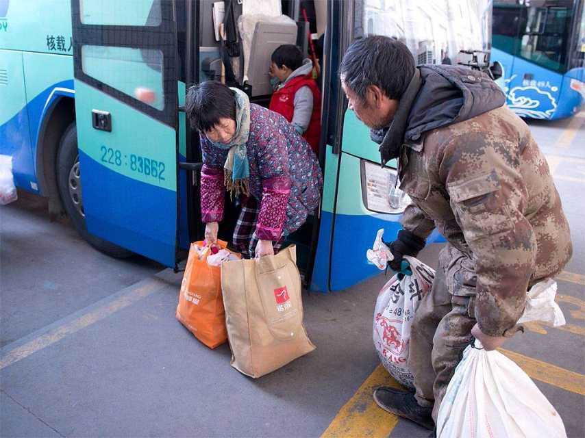 圖一:來自連云港的老王夫婦。老王61歲,老伴59歲。生有一雙兒女。兒子在丹陽打工,女兒在老家工作,都已各自成家。老兩口在揚州施橋承包了30畝地。2月8號上午,老兩口帶著孫女來到揚州汽車西站,老伴兒準備帶孫女去丹陽兒子家過年。