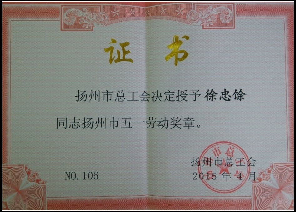 我司職工徐忠馀榮獲揚(yáng)州市五一勞動(dòng)獎(jiǎng)?wù)?/div>