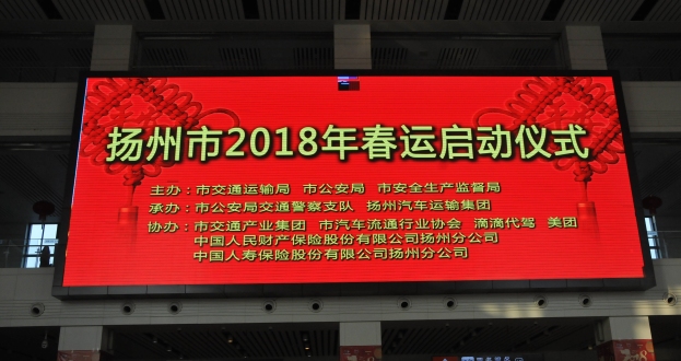2月1日上午8點30分,揚州市2018年春運啟動儀式在西部樞紐揚州客運站舉行。民警、駕駛員、美團騎手、文明交通志愿者等代表參加活動。揚州市公安局、交通運輸局、安監局、交警支隊、運管處、中國人壽、揚汽集團等部門單位領導出席活動。