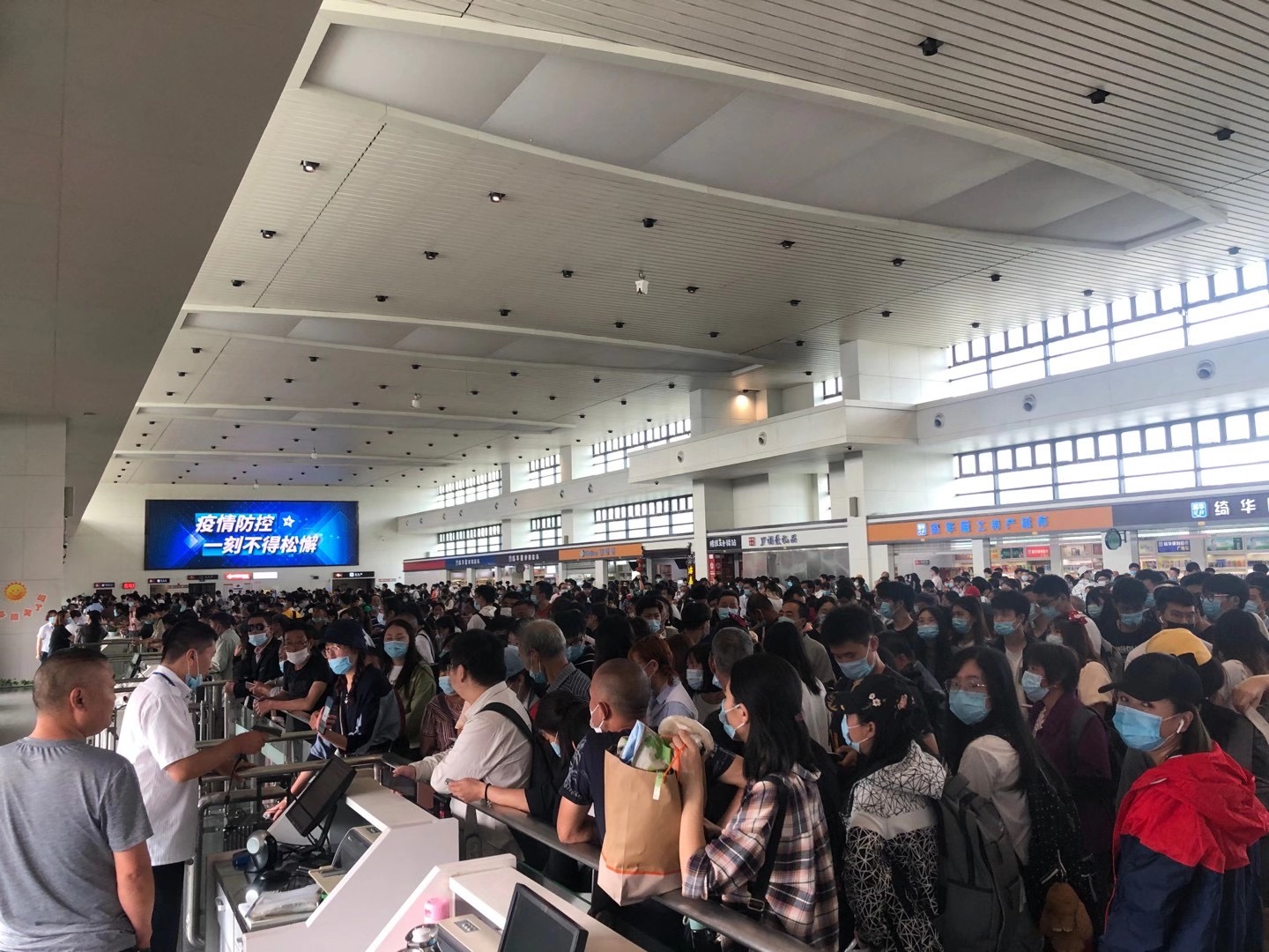 客流高峰期,對部分班次相對密集,旅客流量較大的門號,增加人手,行管人員、志愿者也前往一線,幫助維持秩序,提高服務質量。