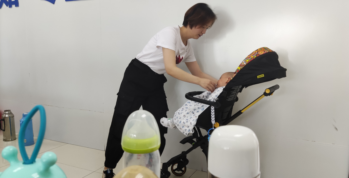 此時(shí),一陣嬰兒的哭泣聲在人群中顯得格外特別,一位推著嬰兒車的年輕媽媽滿臉神情焦急,四處張望著。招生大廳內(nèi)工作人員朱玲看到后,第一時(shí)間走到她的身邊詢問情況,原來這位母親今天是來參加培訓(xùn)的,本來一位朋友說好前來陪同幫忙照看孩子,眼看培訓(xùn)時(shí)間就要到了,她的朋友還沒有來,一時(shí)急的沒有辦法。朱玲了解情況后,主動向孩子母親提出:“目前還在疫情防控期間,培訓(xùn)學(xué)員較多,帶孩子參加不太合適,放在我們這邊幫忙照看是比較妥善的辦法,我愿意幫忙照看孩子,您就安心參加培訓(xùn)吧。”