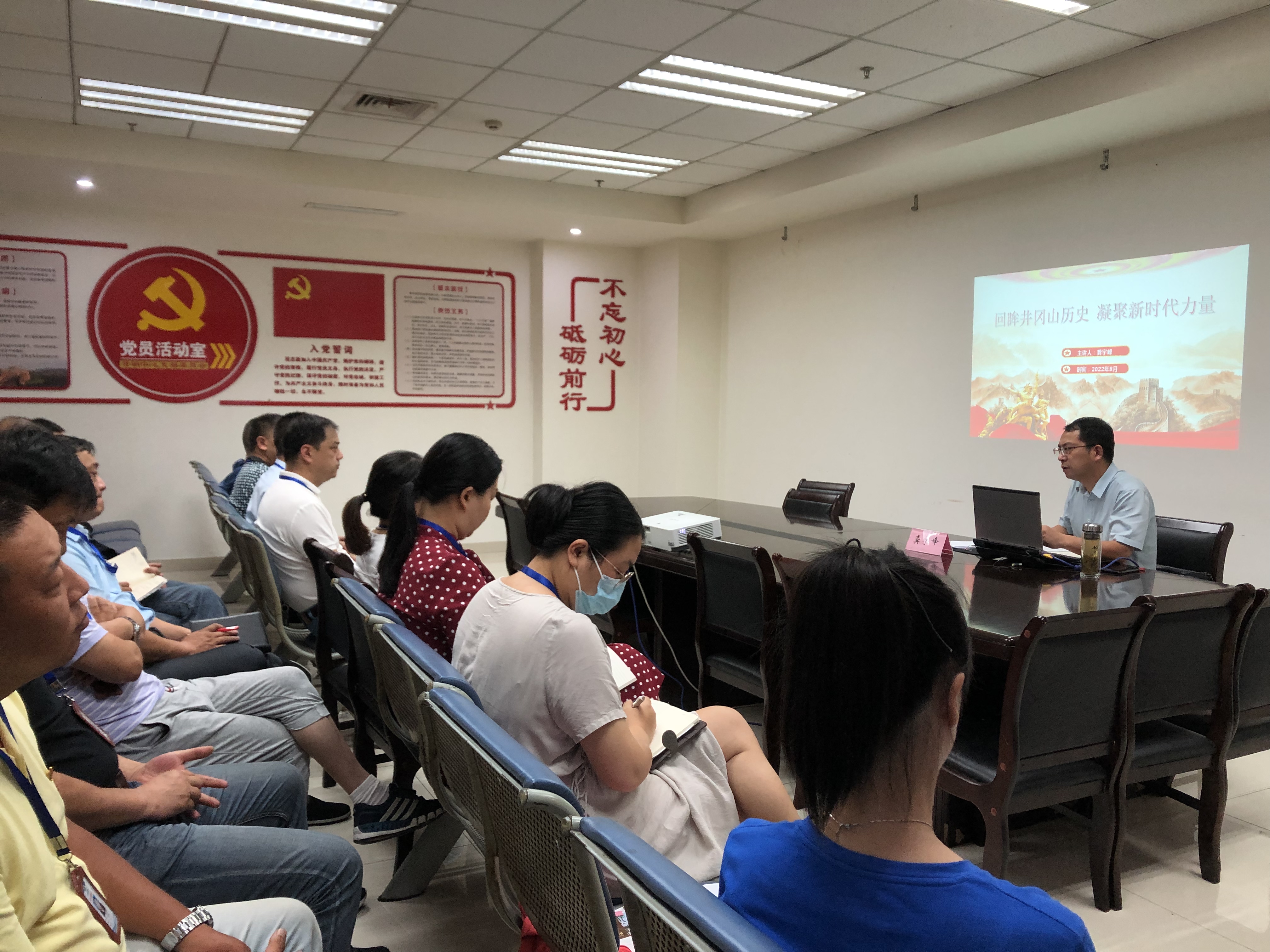 活動中,龔宇峰與全體黨員共同重溫了入黨誓詞,以《回眸井岡山歷史 凝聚新時代力量》為題,從井岡山的歷史、內涵和時代價值等方面帶給大家一堂生動的主題黨課。在場黨員同志們對“第一個農村革命根據地建立”、“ 三灣改編”、“星星之火可以燎原”等黨史有了更深入的理解。